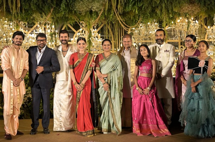 హీరో విజయ్ దేవరకొండ, హీరోయిన్ రష్మికా మందన్నా ఫిబ్రవరి 26న వివాహ బంధంలోకి అడుగుపెట్టిన సంగతి తెలిసిందే. రాజస్థా¯Œ లోని ఉదయ్పూర్ ప్యాలెస్ వేదికగా వీరి పెళ్లి ఘనంగా జరిగింది. ఇదిలా ఉంటే... విజయ్–రష్మిక దంపతులు బుధవారం హైదరాబాద్లో నిర్వహించిన వెడ్డింగ్ రిసెప్షన్ అట్టహాసంగా జరిగింది. ఈ వేడుకకి తెలంగాణ రాష్ట్ర గవర్నర్ జిష్ణు దేవ్ వర్మ, ఉప ముఖ్యమంత్రి భట్టి విక్రమార్క, హీరోలు చిరంజీవి, నాగార్జున, వెంకటేశ్, అల్లు అర్జున్, రవితేజ, నాని, నాగచైతన్య, రానా, మాజీ మంత్రులు కేటీఆర్, సబితా ఇంద్రారెడ్డి, తన్నీరు హరీష్ రావు, మల్లారెడ్డి, డైరెక్టర్లు సుకుమార్, నాగ్ అశ్విన్, శేఖర్ కమ్ముల, హీరోయిన్లు మృణాళ్ ఠాకూర్, కృతీశెట్టి, శ్రీలీల తదితరులు హాజరయ్యారు.