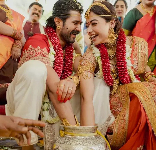 హీరో విజయ్‌ దేవరకొండ, హీరోయిన్‌ రష్మికా మందన్నా గురువారం పెళ్లిపీటలు ఎక్కారు. రాజస్థాన్ లోని ఉదయ్‌పూర్‌ ప్యాలెస్‌ వేదికగా వీరి పెళ్లి ఘనంగా జరిగింది. గురువారం ఉదయం 10గంటల 10 నిమిషాలకు రష్మిక మెడలో మూడు ముళ్లు వేశారు విజయ్‌. తమ పెళ్లి ఫొటోలను సోషల్‌ మీడియా వేదికగా అభిమానులతో పంచుకున్నారు ఇద్దరూ. వీరి పెళ్లి ఫొటోలు నెట్టింట వైరల్‌గా మారాయి. ఈ వివాహానికి ఇరు కుటుం» సభ్యులతో పాటు అతికొద్ది మంది ముఖ్యమైన సన్నిహితులు హాజరయ్యారు. 2025 అక్టోబరులో నిశ్చితార్థం చేసుకున్న విజయ్‌–రష్మికలు గురువారం ఏడడుగులు వేసి, వివాహ బంధంలోకి అడుగుపెట్టారు. మార్చి 4వ తేదీన హైదరాబాద్‌లో వీరి పెళ్లి రిసెప్షన్‌ని ఏర్పాటు చేశారు. ‘గీతగోవిందం’, ‘డియర్‌ కామ్రేడ్‌’ వంటి సినిమాల్లో నటించిన విజయ్‌ దేవరకొండ–రష్మికా మందన్నా ప్రస్తుతం ‘రణబాలి’ అనే చిత్రంలో నటిస్తున్నారు.
