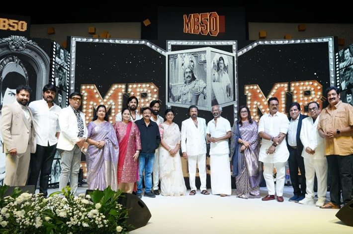 ప్రముఖ నటుడు, నిర్మాత, పద్మ శ్రీ డాక్టర్ ఎం. మోహన్ బాబు తన 50 ఏళ్ల సినీ ప్రయాణానికి సంబంధించిన కార్యక్రమంలో భారతీయ సినిమా, రాజకీయ ప్రముఖుల్ని ఒకే వేదికపైకి తీసుకు వచ్చారు. హైదరాబాద్లోని పార్క్ హయత్లో జరిగిన ఈ వేడుకలో తారలంతా సందడి చేశారు. సినీ ప్రముఖులు, రాజకీయ నేతలు, దిగ్గజ వ్యాపారవేత్తలు, సన్నిహితుల సమక్షంలో MB50 వేడుకలు ఘనంగా జరిగాయి.