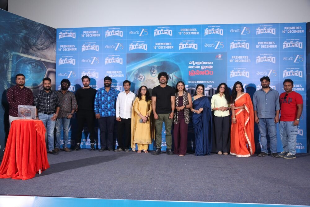 ప్రేక్షకులను ఎప్పటికప్పుడు వైవిధ్యమైన కంటెంట్తో మెప్పిస్తోన్న ఇండియాలో అతిపెద్దదైన ఓటీటీ ఫ్లాట్ఫామ్ జీ 5 మరోసారి తనదైన శైలిలో విలక్షణమైన తెలుగు ఒరిజినల్ సిరీస్తో ఆడియెన్స్ను అలరించనుంది. అదే ‘నయనం’. వరుణ్ సందేశ్, ప్రియాంక జైన్ ప్రధాన పాత్రల్లో నటించిన ఈ సిరీస్లో అలీ రెజా, ఉత్తేజ్, రేఖా నిరోషా తదితరులు కీలక పాత్రల్లో నటిస్తున్నారు. ఈ ఒరిజినల్ జీ5లో డిసెంబర్ 19 నుంచి స్ట్రీమింగ్ కానుంది. ఈ సీట్ ఎడ్జ్ సైకో థ్రిల్లర్ను స్వాతి ప్రకాశ్ డైరెక్ట్ చేశారు. మంగళవారం నయనం ట్రైలర్ లాంచ్ ఈవెంట్ జరిగింది.
